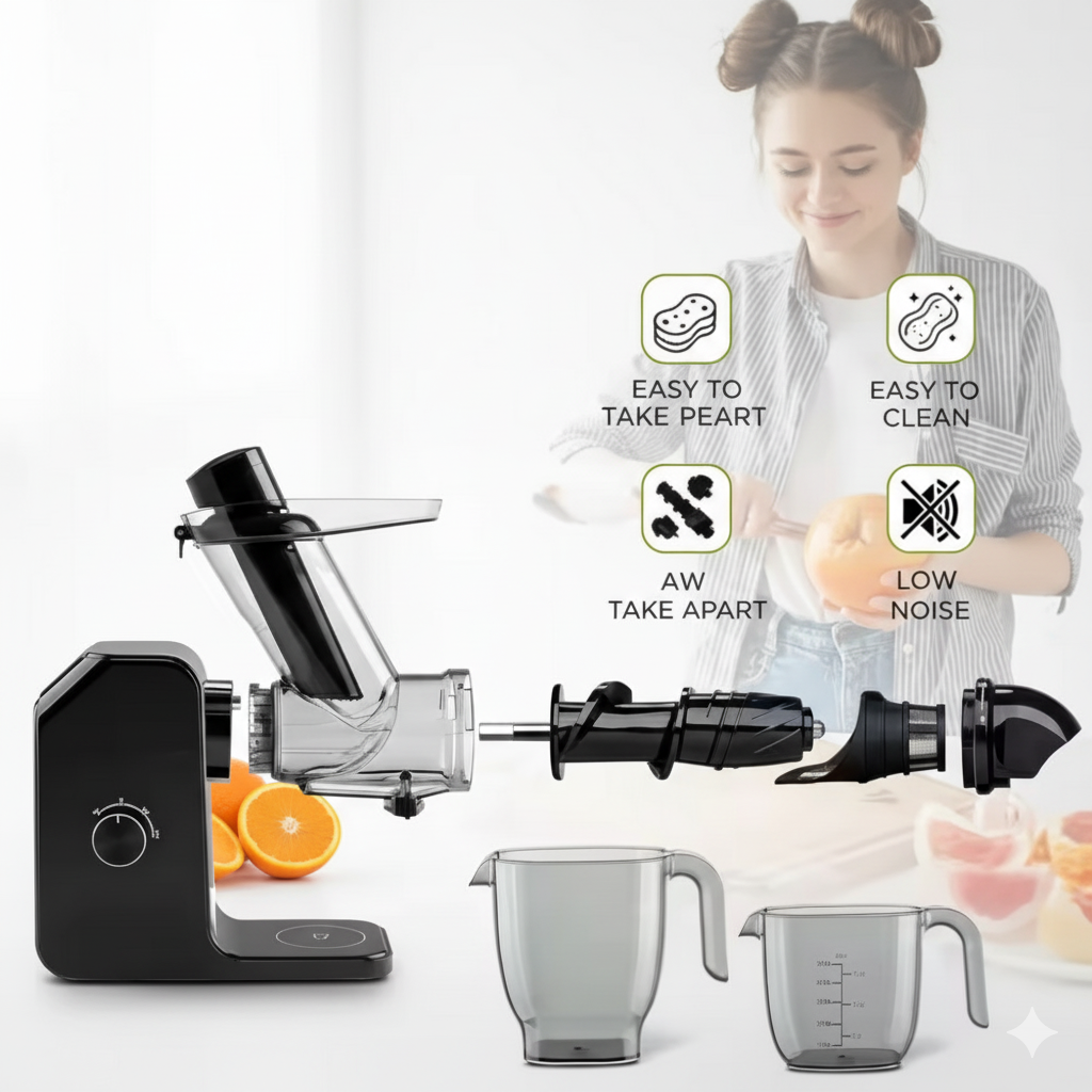 Designed for everyday convenience, the BlendJoy Cold Press Juicer can be taken apart and reassembled in seconds. Each component is lightweight and easy to rinse, making cleanup quick and stress-free. Enjoy a smooth, quiet juicing experience that fits perfectly into your morning routine — simple, clean, and ready for fresh flavor anytime.