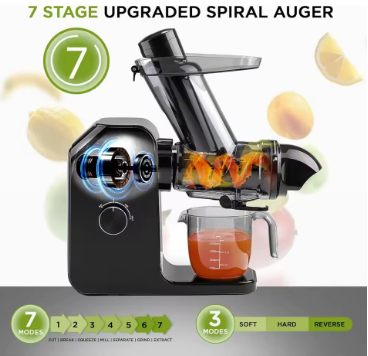 Experience powerful juice extraction with BlendJoy’s upgraded 7-stage spiral auger. Each stage is engineered to cut, grind, and squeeze ingredients with precision, producing smoother juice and higher yield. Choose from 3 smart modes—Soft, Hard, and Reverse—for perfect results every time, no matter what fruits or vegetables you use.